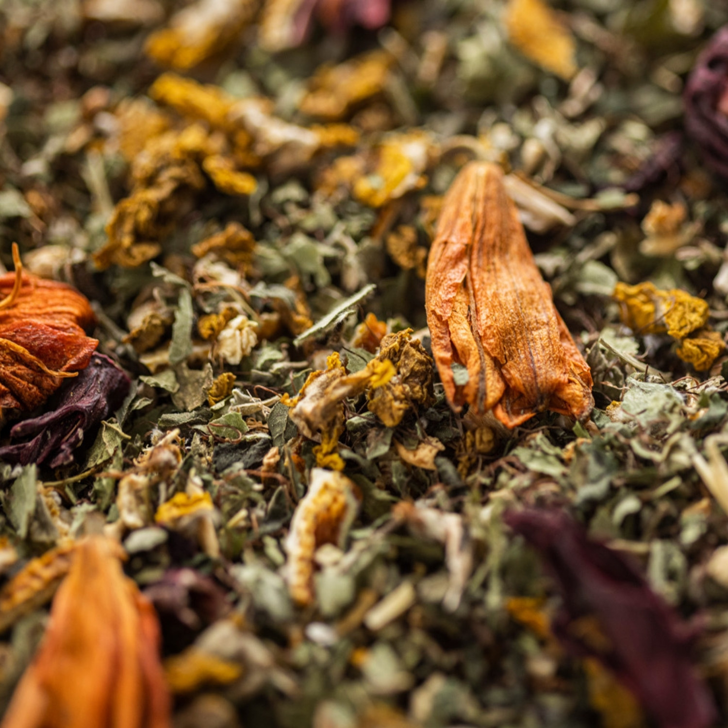 Shatavari*, Liść Damiany, Dziewanna, Głóg, Hibiskus, Przywrotnik, Seler, Znamiona kukurydzy, Pokrzywa zwyczajna, Bai He** (kwiat lilii), Chen Pi** (skórka dojrzałej mandarynki)